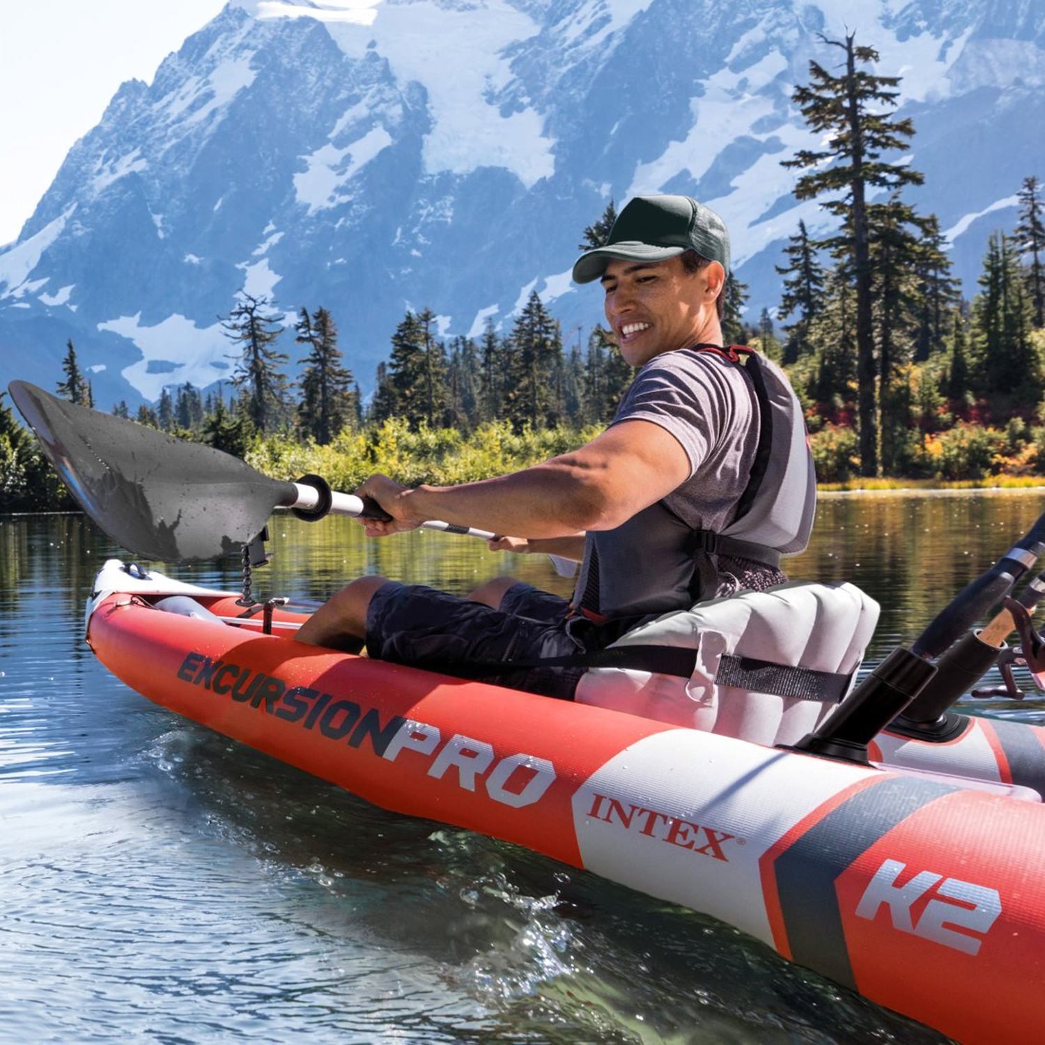 Realizzato con vinile super-resistente per robustezza, il kayak Intex Excursion™ Pro K2 ha sedili regolabili, poggiapiedi integrati e porta canne. Materiali di altissima qualità selezionati in fase di progettazione.
